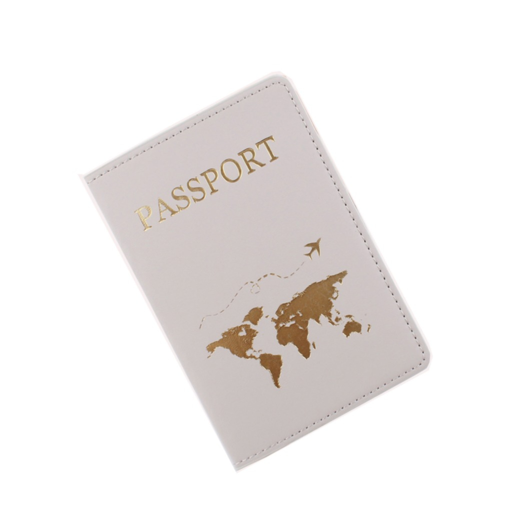Reisepass Leder Schutzhülle mit Visitenkartenfach - Beige / Gold