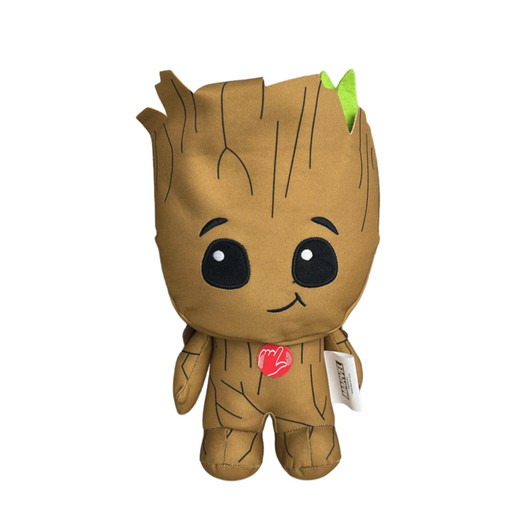 Dank dem angenehmen Stoff liegt das Plüschtier weich in der Hand und lädt direkt zum Schmusen ein. Mit seiner Grösse von ca. 30 cm ist Groot ideal für unterwegs, für das Kinderzimmer oder als dekorativer Blickfang auf dem Bett oder Regal. Zudem macht er lustige Geräusche, wenn du auf ihn drauf drückst.