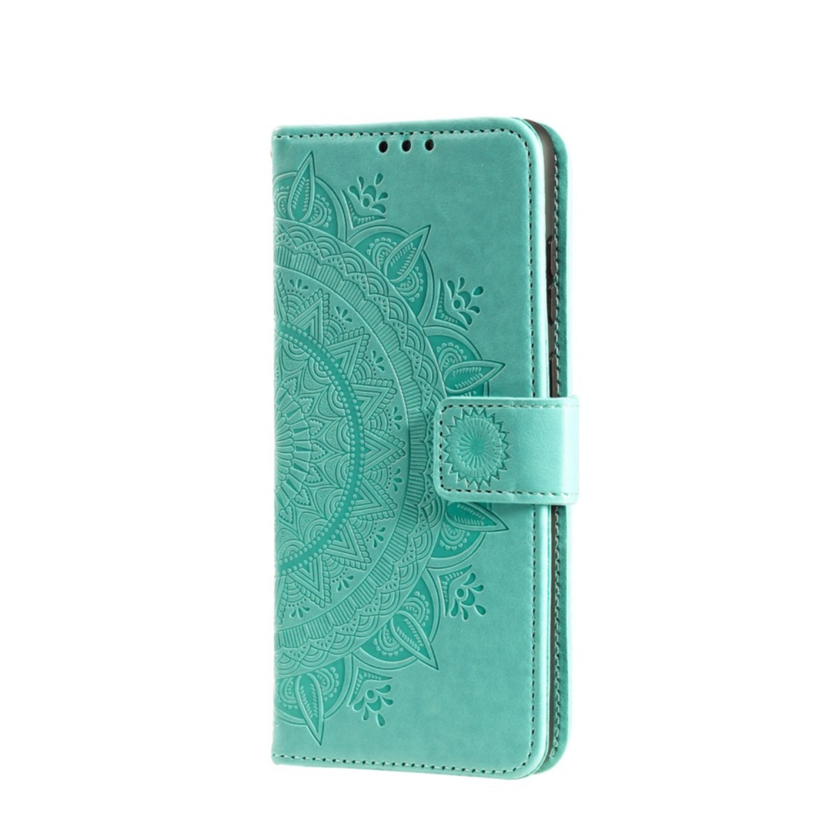 Samsung Galaxy A33 5G Leder Tasche Wallet - Mandala Flowers Imprint - Türkis