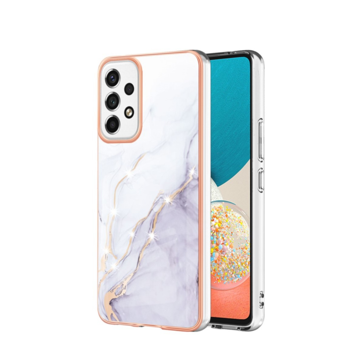 Samsung Galaxy A53 5G Gummi Case Hülle Galvanisierter Rahmen Marble Marmor Design - Lila / Roségold