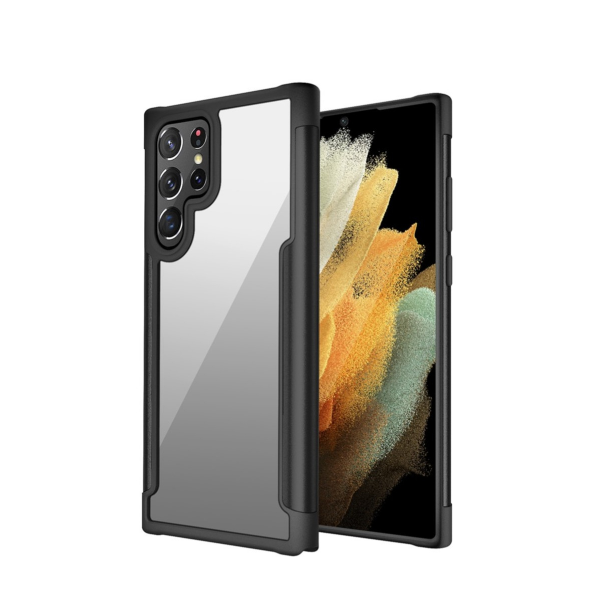 Samsung Galaxy S22 Ultra 5G Hybrid Bumper Hülle mit Acryl Rückseite - Schwarz / Transparent