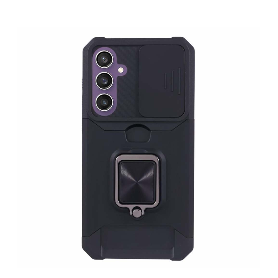 Samsung Galaxy S25 FE Hybrid Outdoor Hardcase Hülle mit Cam-Slider + Magnetischer Kickstand - Schwarz