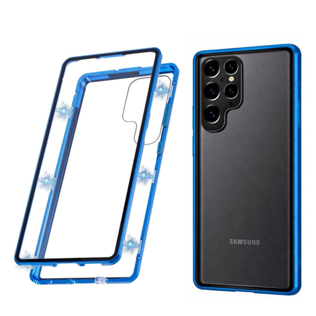 Samsung Galaxy S25 Ultra Magnetische Alu Schutzhülle mit Panzer Glas Backcover + Display- / Kameraschutz (Magnet-Technologie) - Blau