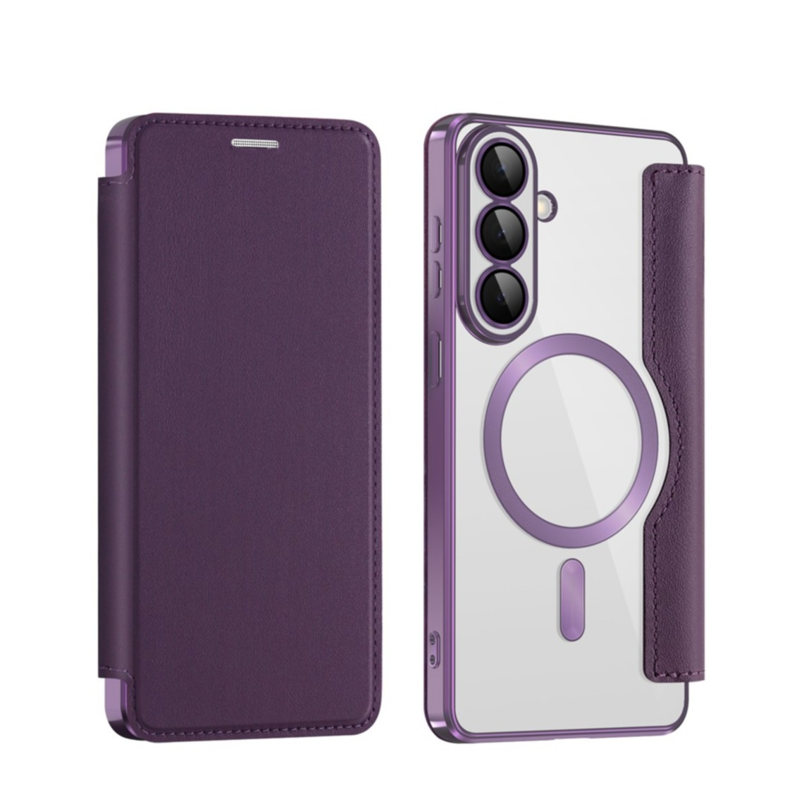 Samsung Galaxy S26 Hybrid Kunstleder Tasche + Kunststoff Rückseite MagSafe-Modul (RFID Schutz) - Violett / Transparent