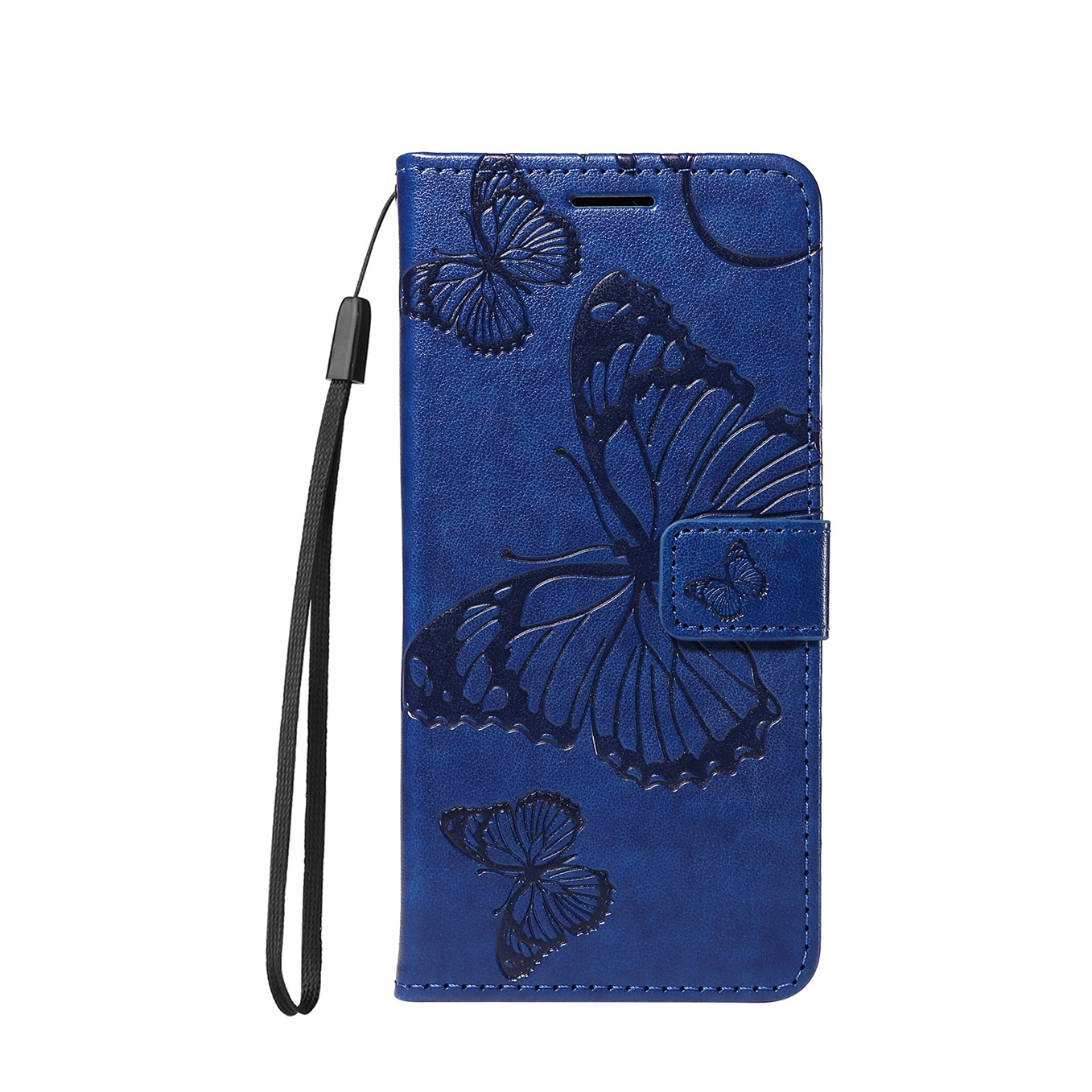Samsung Galaxy S26 Kunstleder Tasche Flip Cover Schmetterlinge Imprint - Dunkelblau