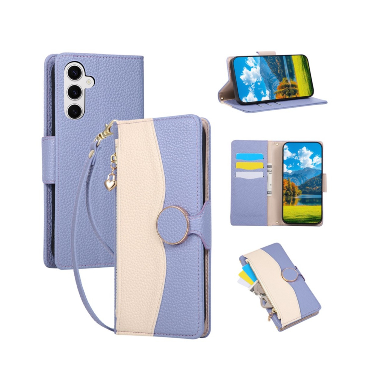 Unsere Samsung Galaxy S26 Tasche im praktischen Portemonnaie Design, mit integrierten Kartenfächern, macht dein Samsung Galaxy S26 wahrhaftig einzigartig. Nicht nur die moderne Kunstleder Litchi Struktur der Tasche, sondern auch der Reissverschluss für Münzen und Geldscheine sorgen hier für Augenaufschlag. Das Karten-Etui auf der Innenseite macht unsere Schutzhülle zur optimalen Alternative zur Brieftasche und schützt dein Samsung Galaxy S26 hervorragend vor Kratzern, Schmutz und Stössen.
