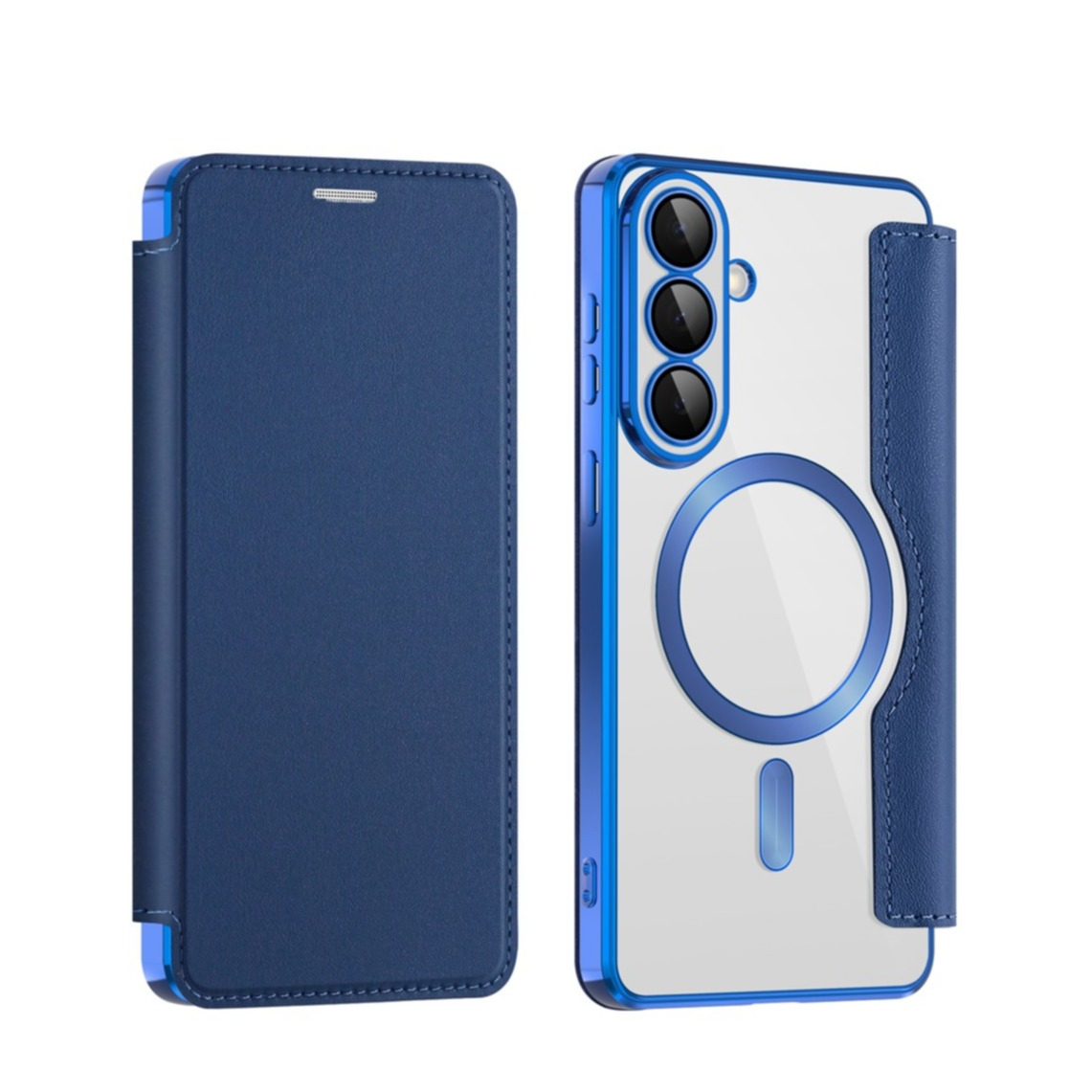 Samsung Galaxy S26+ Plus Hybrid Kunstleder Tasche + Kunststoff Rückseite MagSafe-Modul (RFID Schutz) - Dunkelblau / Transparent