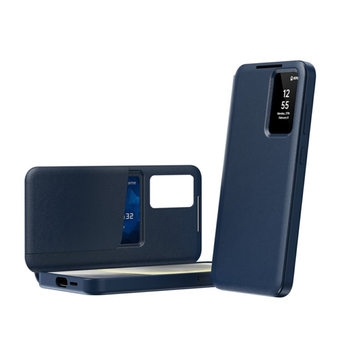Samsung Galaxy S26 Ultra Leder Hülle Small Window View Flip Case Litchi Look - Dunkelblau