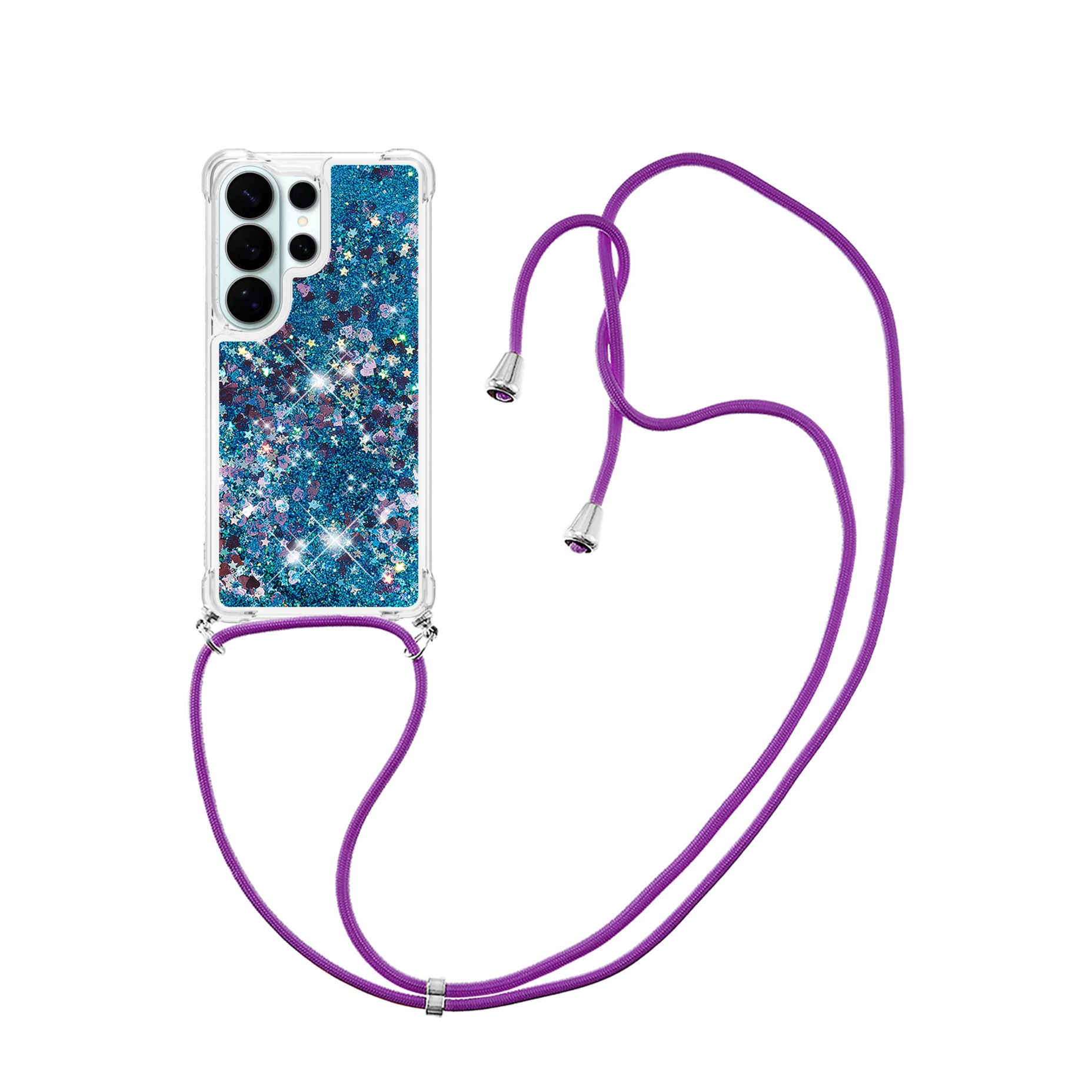 Samsung Galaxy S26 Ultra Necklace Gummi Hülle Liquid Glitzer + Handykette (130cm) - Blau