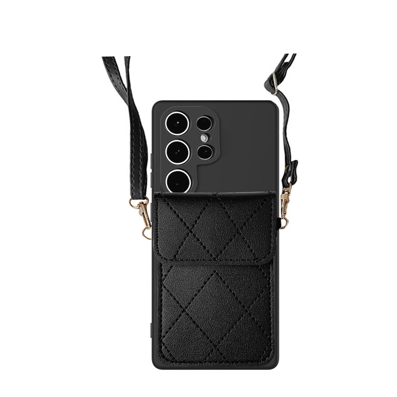 Samsung Galaxy S26 Ultra Necklace Hybrid Schutz Hülle mit Kartenfächer + Handykette (110cm) - Schwarz