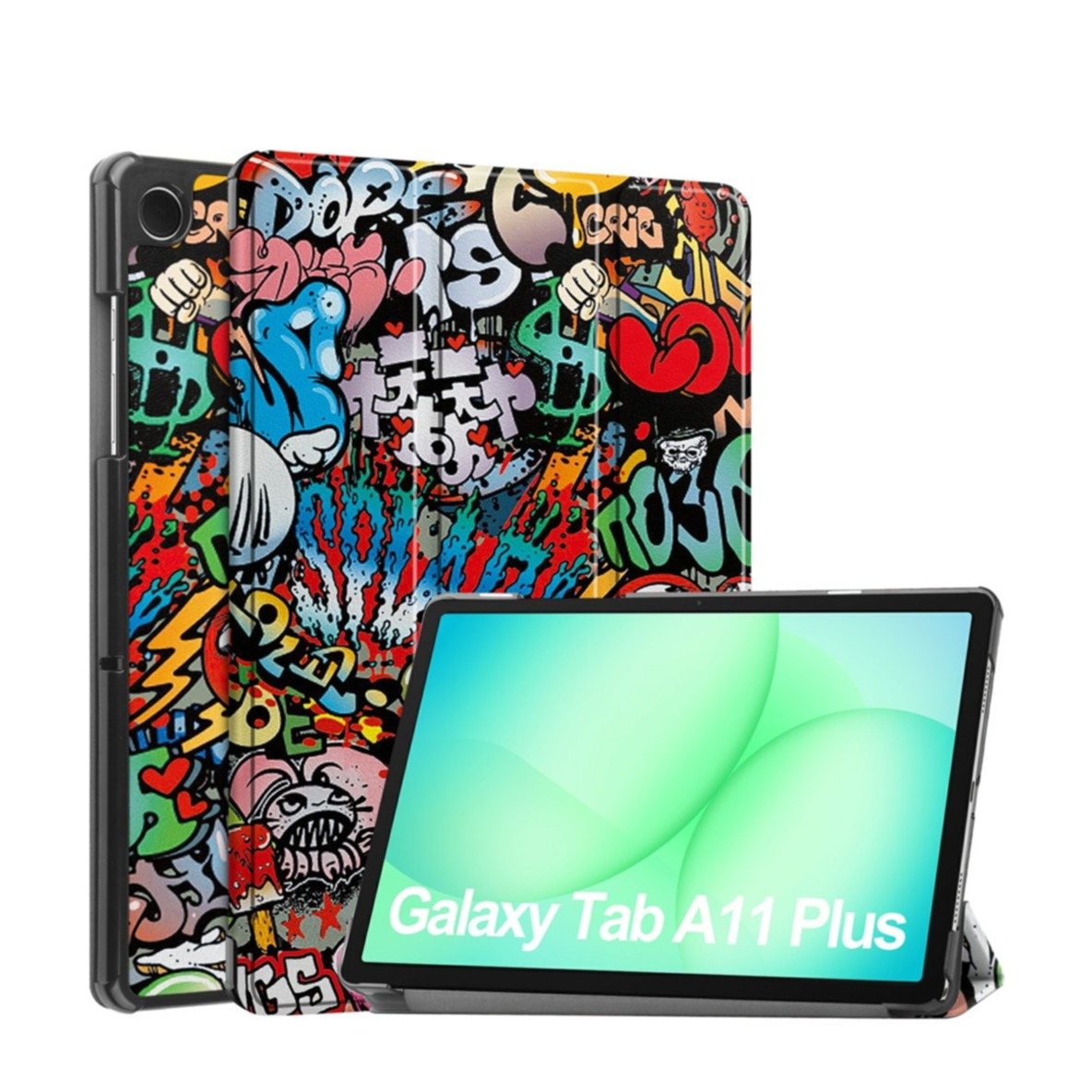 Samsung Galaxy Tab A11+ Plus / A9+ Plus Leder Tasche Smart Cover Schutzhülle - Graffiti