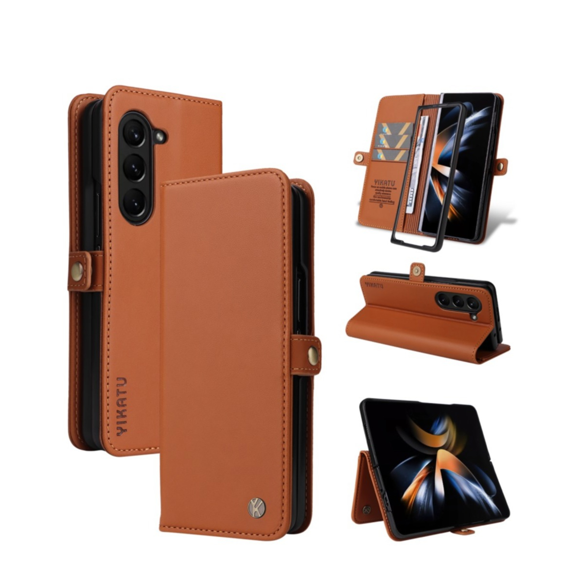 Samsung Galaxy Z Fold6 Leder Tasche Flip Cover mit Kartenfächer - Braun