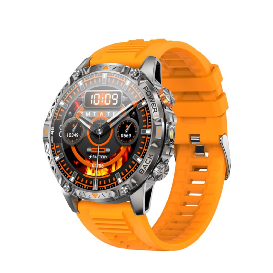 Für Outdoor Aktivitäten bietet die Uhr praktische Zusatzfunktionen wie einen elektronischen Kompass und eine integrierte Taschenlampe. Der leistungsstarke 1000mAh Akku ermöglicht eine lange Nutzungsdauer, während das robuste Gehäuse mit IP68 Schutz sowie das flexible Silikonarmband für Komfort und Widerstandsfähigkeit im Alltag sorgen.