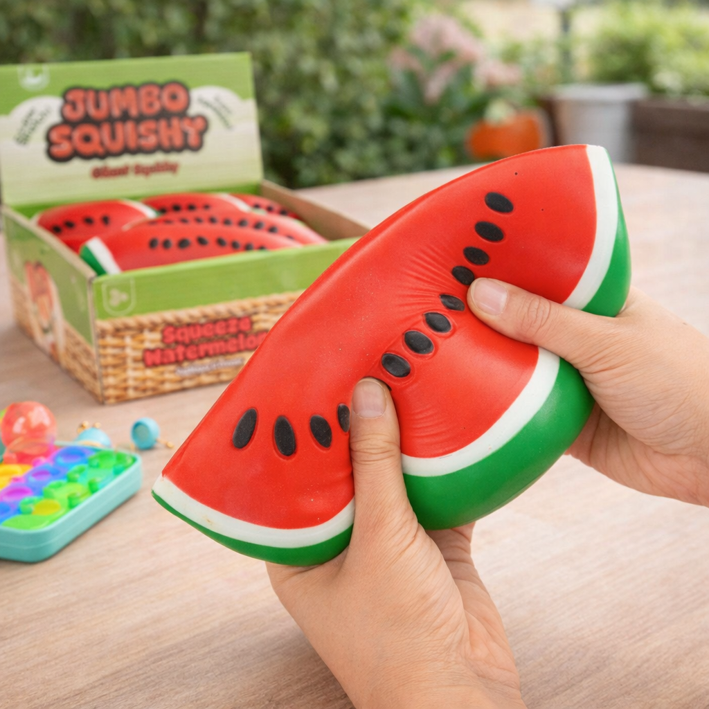 Mit dem Sombo Jumbo Squishy Wassermelone holst du dir einen besonders fruchtigen Begleiter für entspannte Momente. Das grosse Wassermelone Knautsch Spielzeug lädt dich dazu ein, es zu drücken, zu kneten und einfach den Alltag hinter dir zu lassen. Ideal, um Stress abzubauen oder die Hände spielerisch zu beschäftigen.