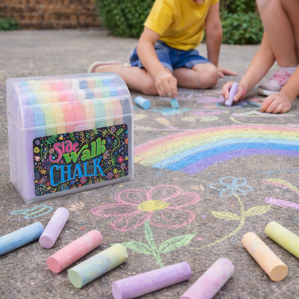 Die Side Walk Chalk Kreiden liegen gut in der Hand und eignen sich ideal für Kinder. Dank der praktischen Aufbewahrungsbox kannst du die Kreiden einfach transportieren und ordentlich verstauen – perfekt für unterwegs oder den nächsten Ausflug nach draussen.