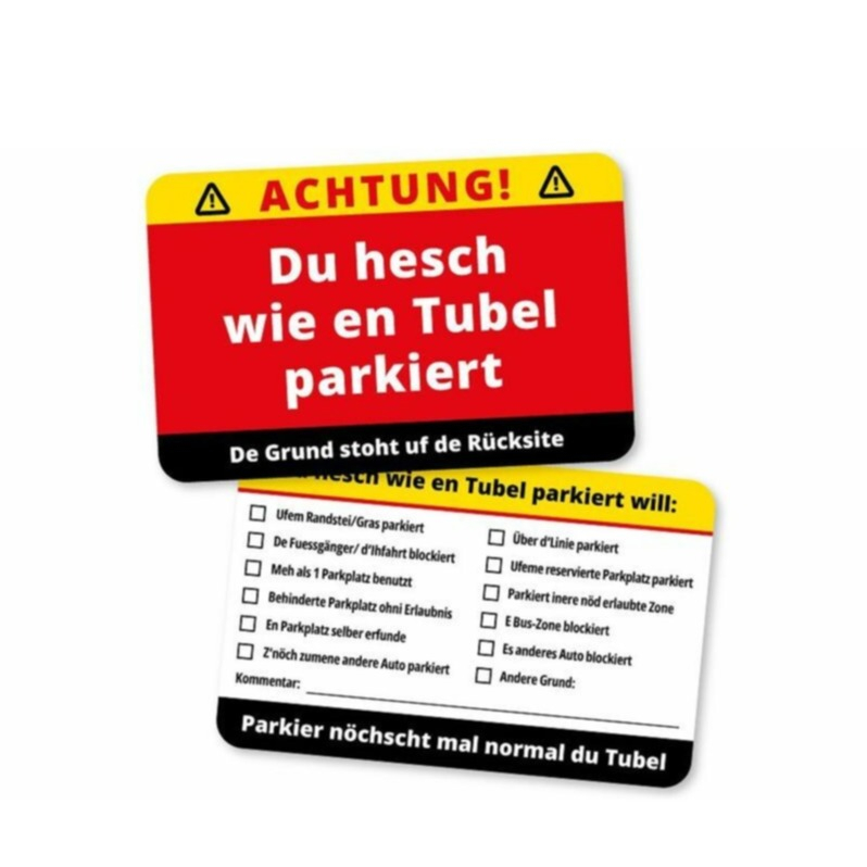 Statt dich zu ärgern, lass die „Tubel“ Karte sprechen! Mit einem Augenzwinkern und einer Prise Sarkasmus gibst du Parkplatz Chaoten eine stilvolle Lektion. Einfach auf der Rückseite ausfüllen und an der Auto Windschutzscheibe oder am Türgriff anbringen – frech, aber charmant!