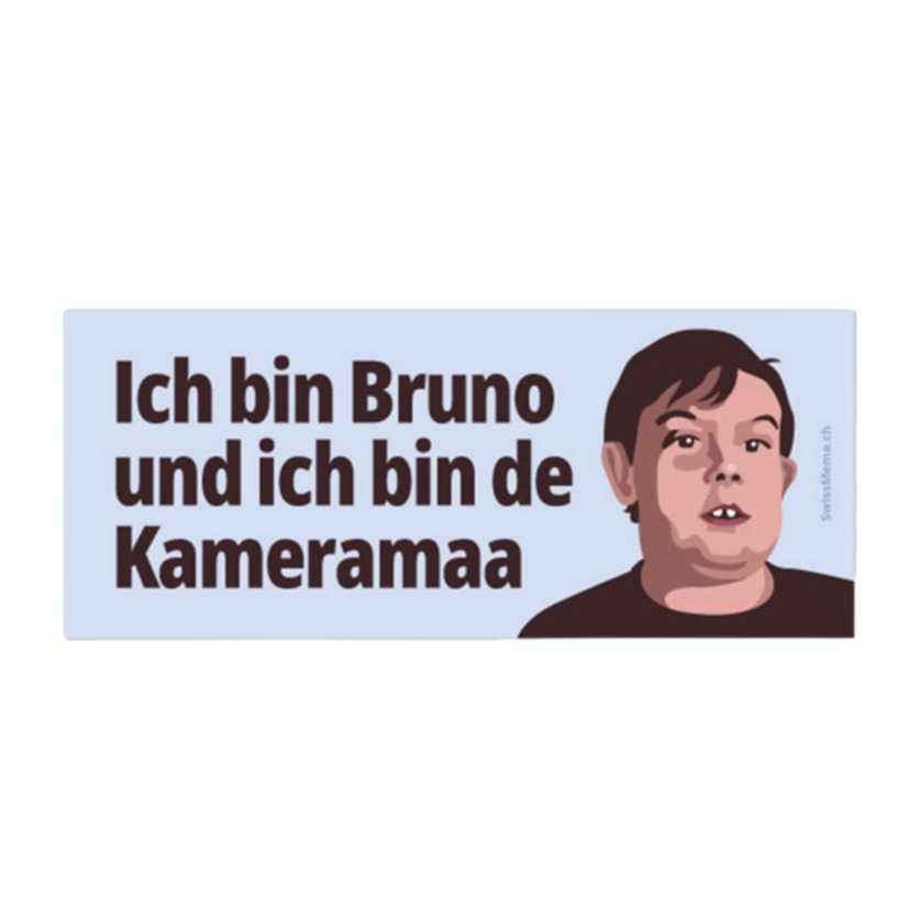 Mit diesem lustigen Sticker von SwissMeme setzt du ein humorvolles Statement! Der hochwertige Aufkleber mit dem Spruch „Ich bin Bruno und ich bin de Kameramaa“ ist perfekt geeignet für auf Gegenstände wie dein Laptop, dem Auto oder am Spind und bringt garantiert ein Schmunzeln mit sich. Dank seiner wasserfesten Oberfläche hält der Meme Sticker auch draussen oder im Alltag zuverlässig. Perfekt für alle, die Memes lieben und gerne mit einem Augenzwinkern durchs Leben gehen.