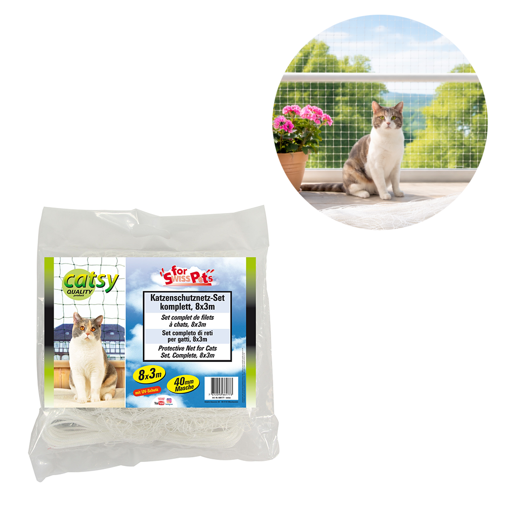 Das robuste Schutznetz von Swisspet sorgt für mehr Sicherheit für deine Katze. Es eignet sich ideal für den Einsatz auf dem Balkon, der Terrasse oder zum Absichern von gekippten Fenstern. Das Netz verhindert, dass dein Haustier abstürzt oder unbeaufsichtigt nach draussen gelangt. Dank der engen Maschenweite ist das UV-beständige Sicherheitsnetz auch für kleine Katzen und Kätzchen bestens geeignet.