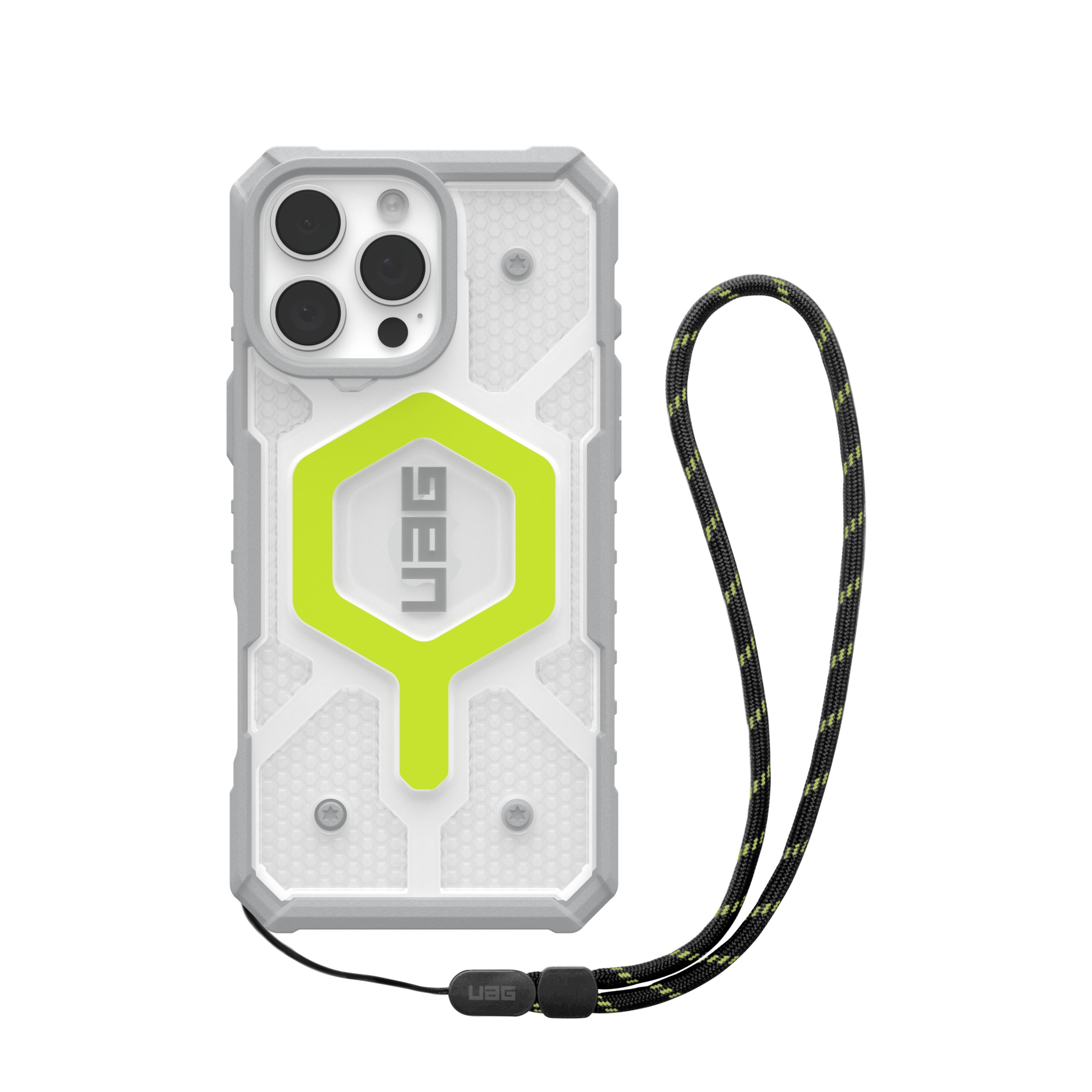 iPhone 16 Pro MagSafe Schutzhülle Pathfinder + Trageschlaufe (1144641BV01) - Active Neon (Transparent / Gelb)