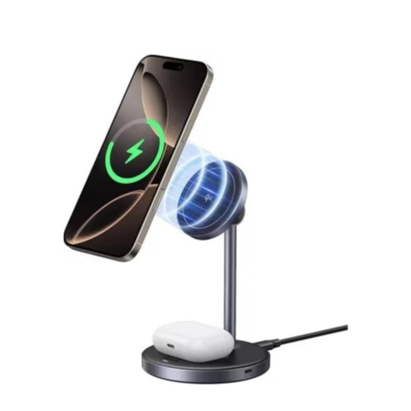 Du suchst nach einer praktischen Lösung, um deine Geräte auf dem Nachttisch oder im Büro aufzuladen? Mit dem magnetischen kabellosen 2in1 Ladegerät von Ugreen hast du genau das gefunden. Es ist kompatibel mit dem magnetischen, kabellosen Laden. Dank seiner starken magnetischen Anziehungskraft bleibt es fest an Ort und Stelle und garantiert eine vollständige Aufladung auf einmal. Dieser Qi2 Charger ermöglicht es dir sogar, dein Handy im Hoch- oder Querformat auszurichten, ohne dabei an Effizienz zu verlieren. Dieser Charger von Ugreen ermöglicht dir das gleichzeitige Laden von zwei Geräten und sorgt dafür, dass auch deine Apple AirPods immer einsatzbereit bleiben.