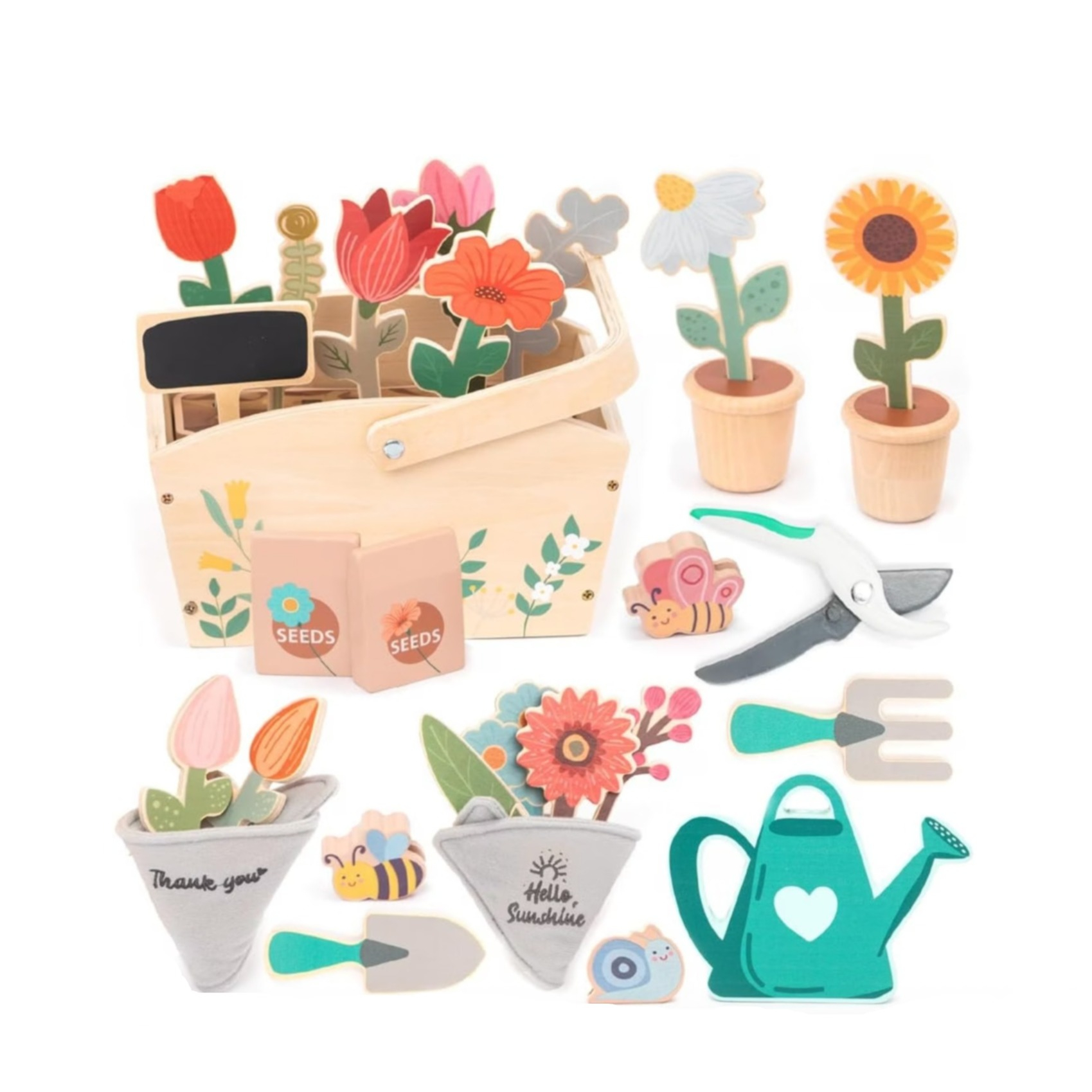 (30-tlg. Set) Holz Kinder Garten Spielzeug Blumen Zubehör Lern Spielset (UM1354) - Bunt