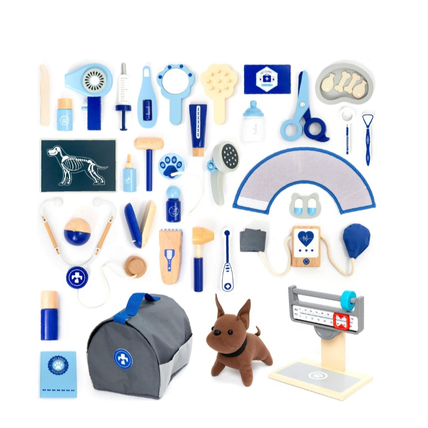 (37-tlg. Set) Holz Kinder Tierarzt Spielzeug Doktor Zubehör Lern Spielset (UM011) - Blau