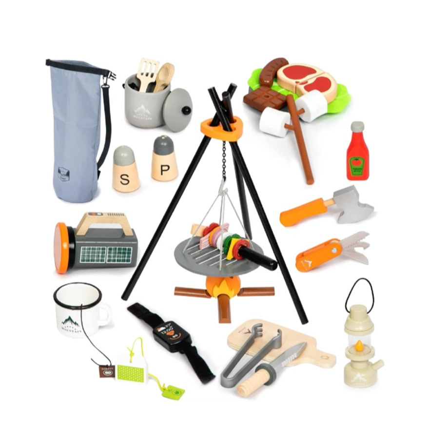 (45-tlg. Set) Holz Kinder Camping Spielzeug Lagerfeuer Zubehör Lern Spielset (UM005) - Bunt