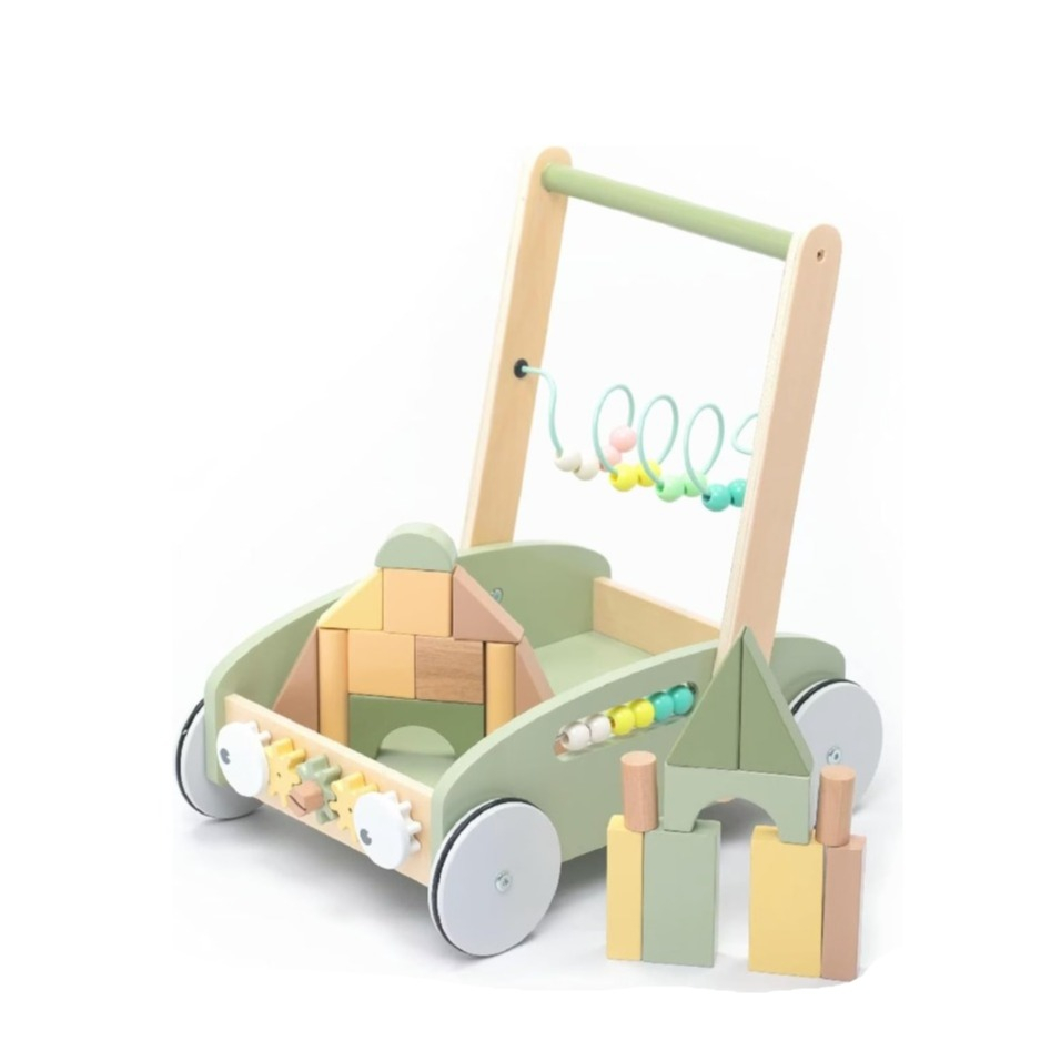 5in1 Holz Baby Lauflernwagen Gehhilfe Kinder Activity Center Holzblöcke Motorik Lern Spiel (UM024) - Grün