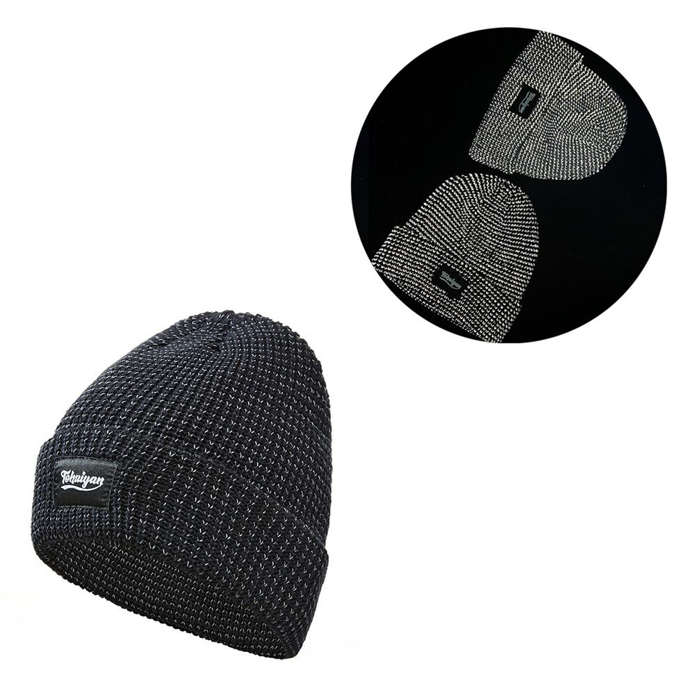 Unisex Reflektierende Strickmütze Beanie Winter Mütze (One Size) - Schwarz