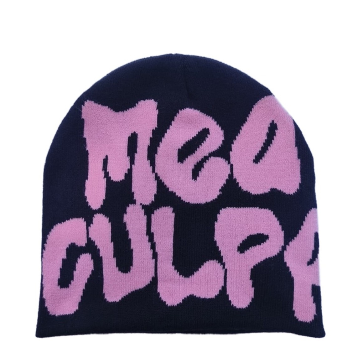 Unisex Strickmütze Beanie Winter Mütze Mea Culpa (One Size) - Schwarz / Pink
