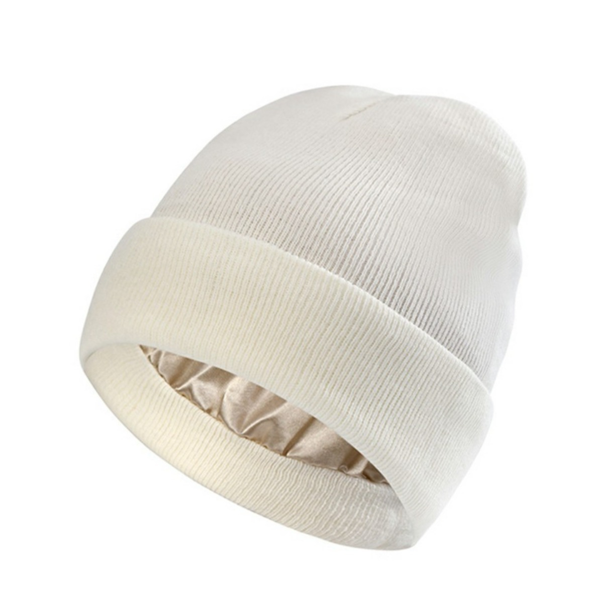 Unisex Strickmütze Beanie Winter Mütze mit Satin Innenfutter (One Size) - Weiss