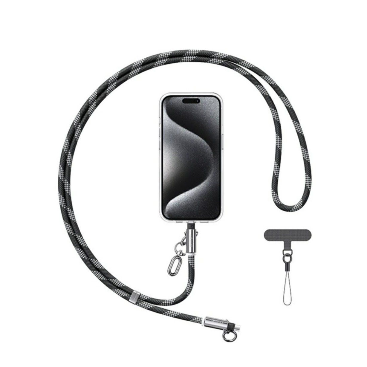 (1.2m) 30W 2in1 USB C auf Lightning Ladekabel Datenkabel Handykette Crossbody Lanyard mit Universal Einlage (SJ746GS01) - Schwarz