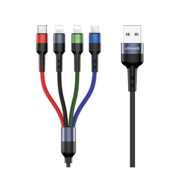 Mit unserem praktischen 4in1 Ladekabel von Usams kannst du ab nun deine Smartphones und Tablets problemlos über USB A aufladen. Das Ladekabel verfügt über einen 2x Lightning, einen Micro USB und zwei USB C Anschlüsse. Dadurch ist es vielseitig einsetzbar und der ideale Begleiter auch für unterwegs oder auf Reisen. Das hochwertige und sehr stabile Kabel von Usams macht ein Verknoten fast unmöglich und ist jederzeit sofort einsatzbereit.