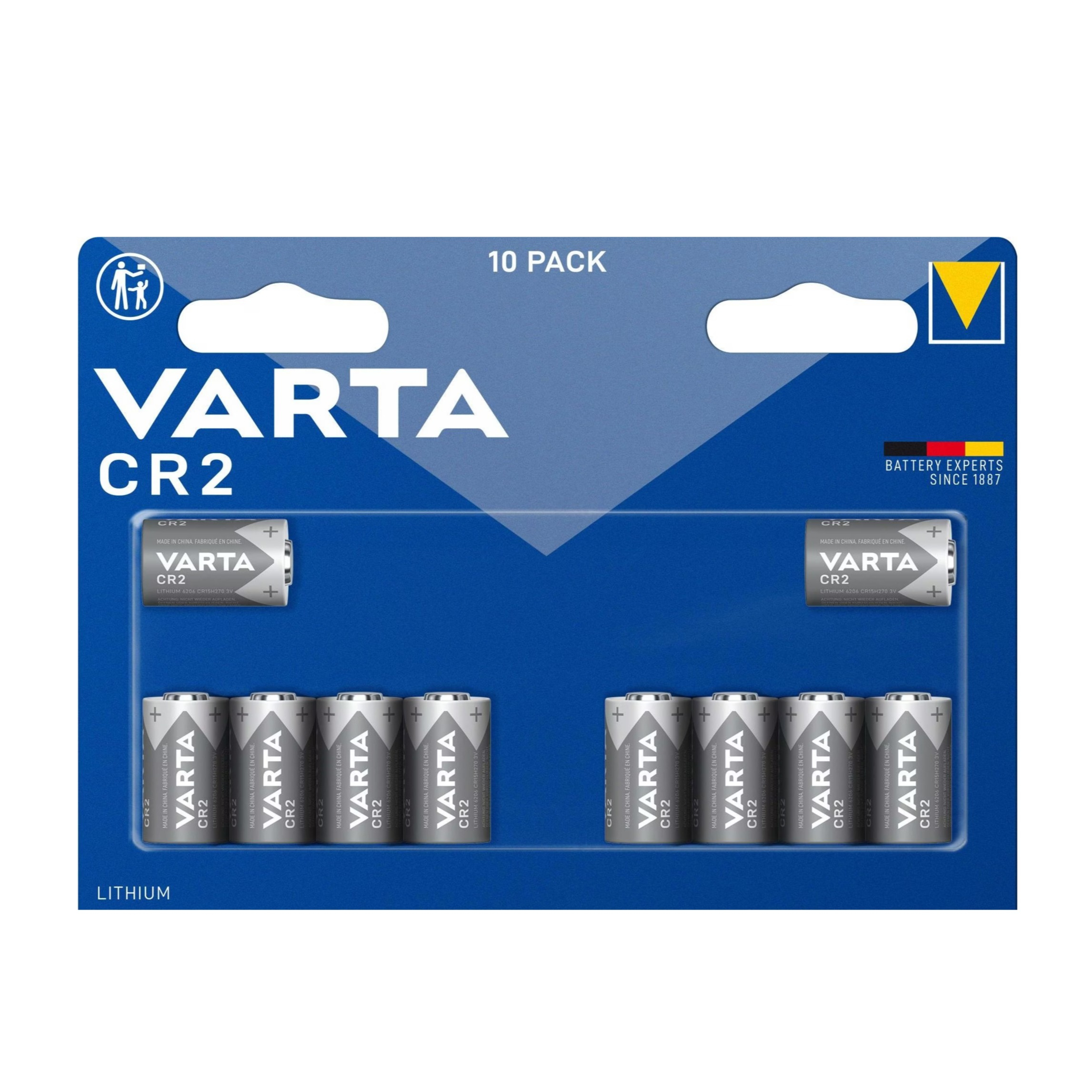 Die CR2 Foto Batterie von Varta zeichnet sich durch extrem niedrige Selbstentladung (< 1 % pro Jahr) und hohe Umweltverträglichkeit aus. Damit ist die Lithium Foto Batterie bis zu 10 Jahre haltbar, ohne dabei nennenswert an Qualität zu verlieren.