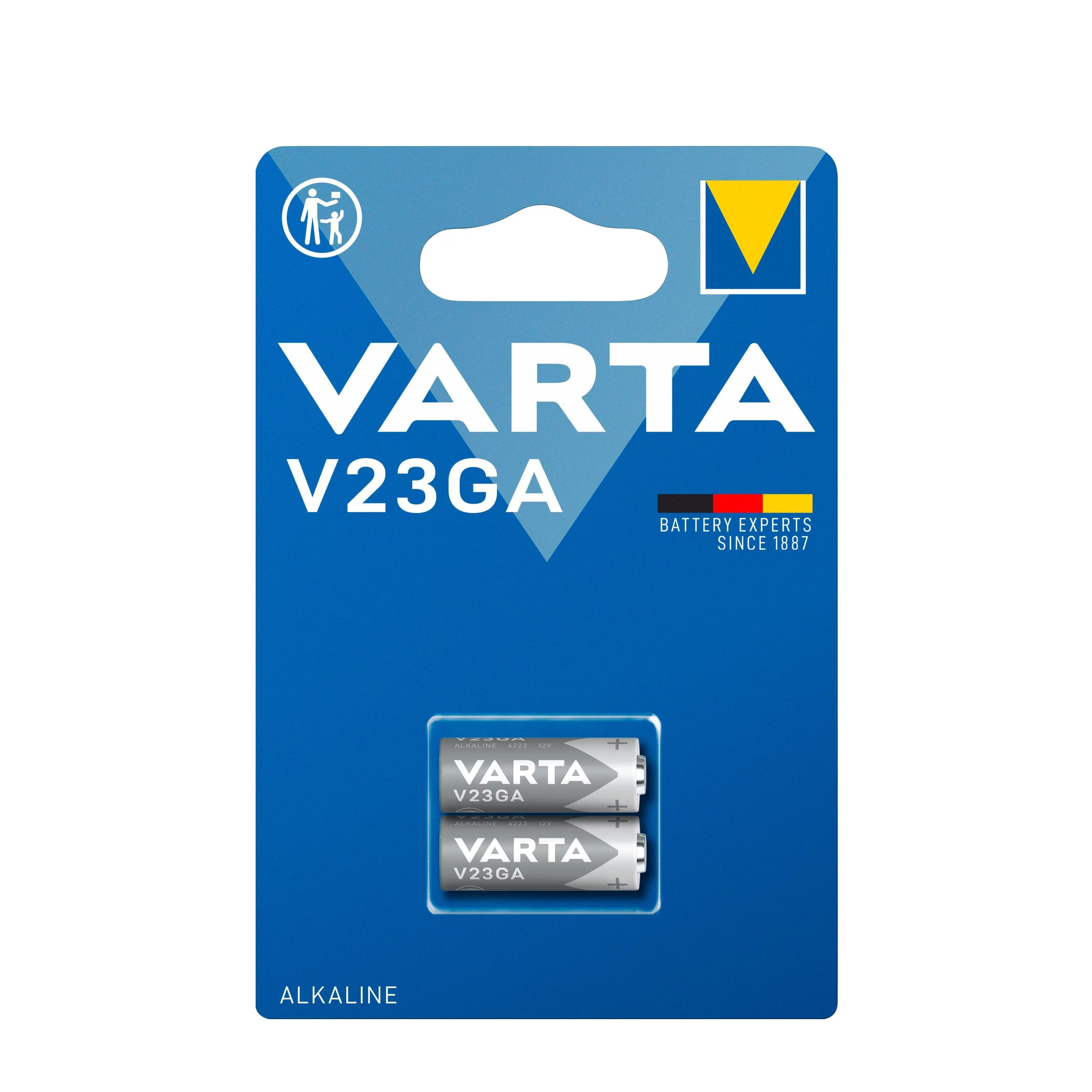 Die Varta Batterie V23GA liefert eine recht hohe Spannung von 12 Volt. Besonders geeignet für Spielzeuge, Audiogeräte, Elektronikspiele, Messgeräte und Uhren. Die V23GA Batterie findet man sehr häufig in Fernbedienungen für Garagentore, sowie in Alarmanlagen und Handsendern.