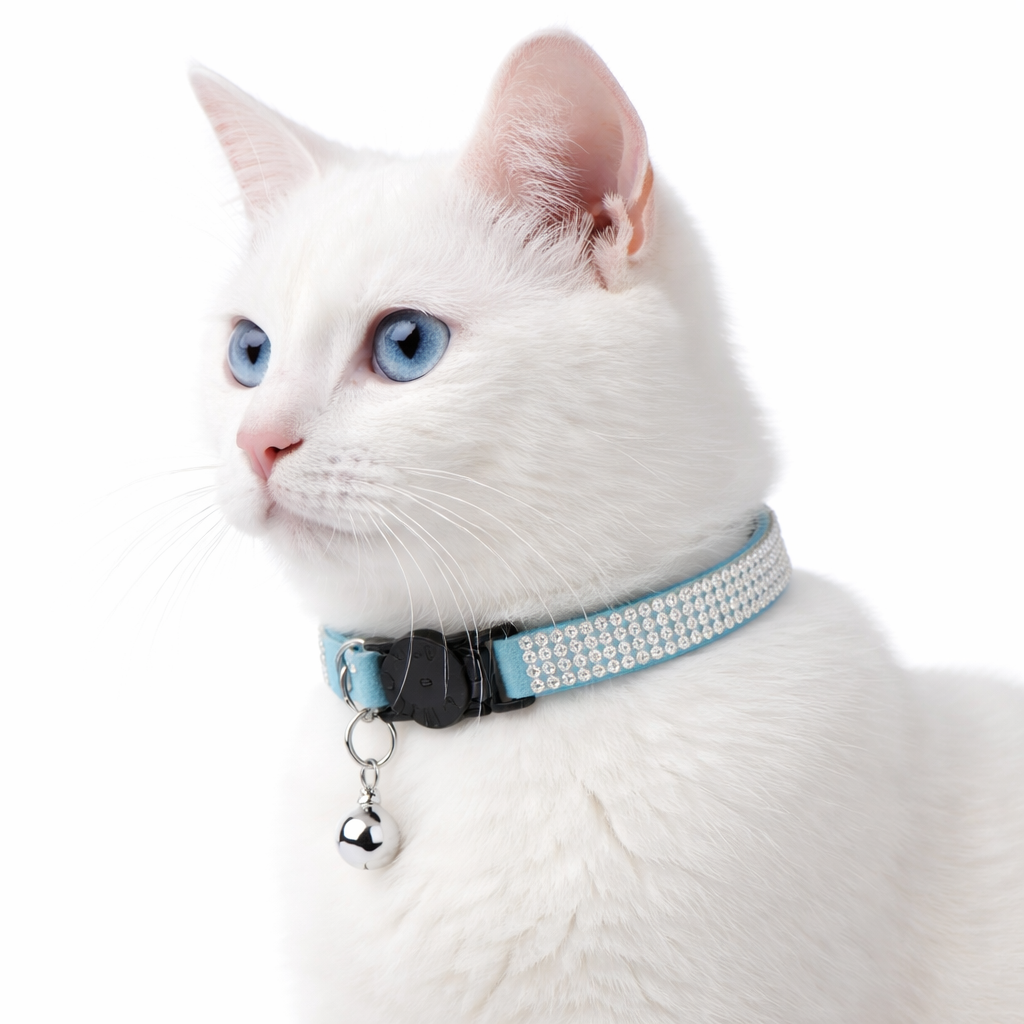 Verstellbares Glitzer Katzen Halsband mit Strasssteinen / Glöckchen - Blau