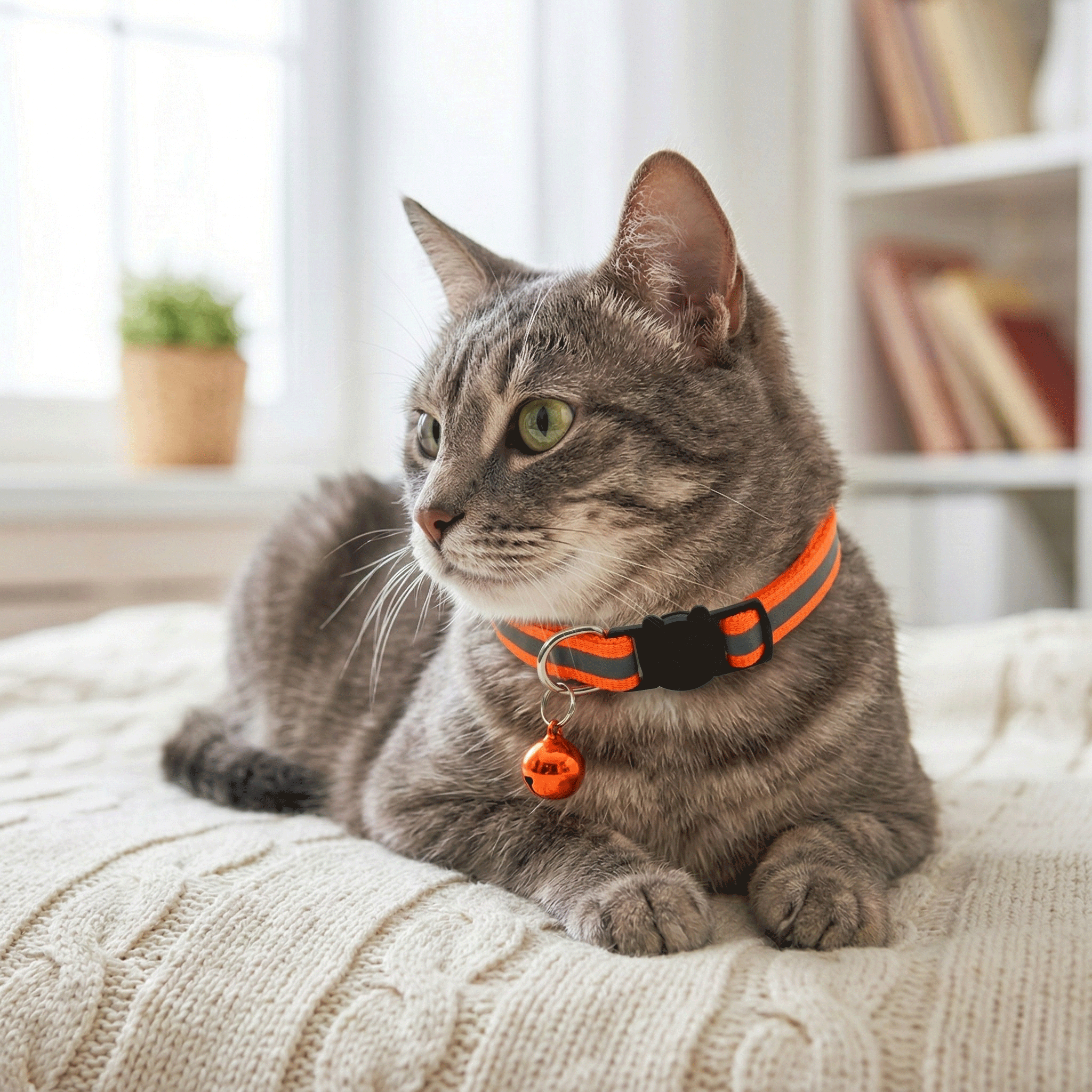 Verstellbares Katzen Halsband mit Reflektor Streifen + Glöckchen - Orange