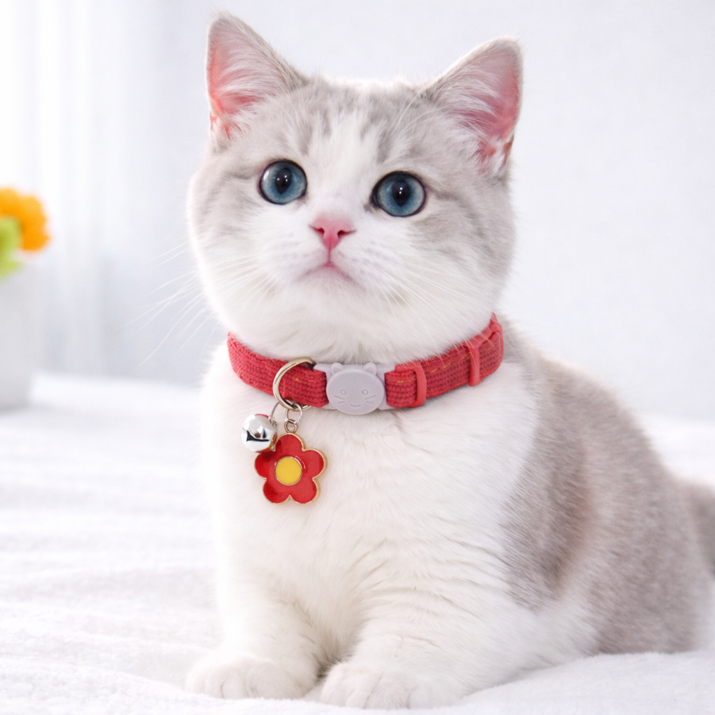 Verstellbares Kord Katzen Halsband mit Blume / Glöckchen - Rot