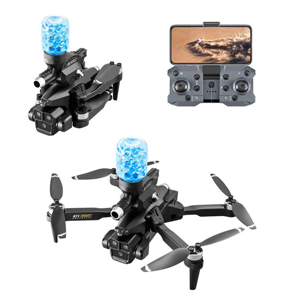 WiFi Faltbare RC Quadrocopter GPS Drohne 3-Linsen HD Kamera Video Live-Übertragung mit Wasserbomben Abwurf + Fernbedienung (iOS/Android) - Schwarz