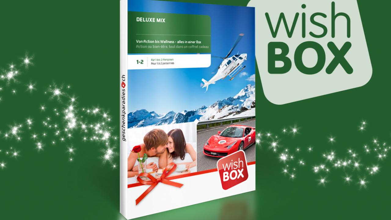 Besonderes Die aktuelle und verbindliche Erlebnisauswahl findet die beschenkte Person jederzeit online unter www.geschenkparadies.ch/a/wishbox-deluxe-mix1.