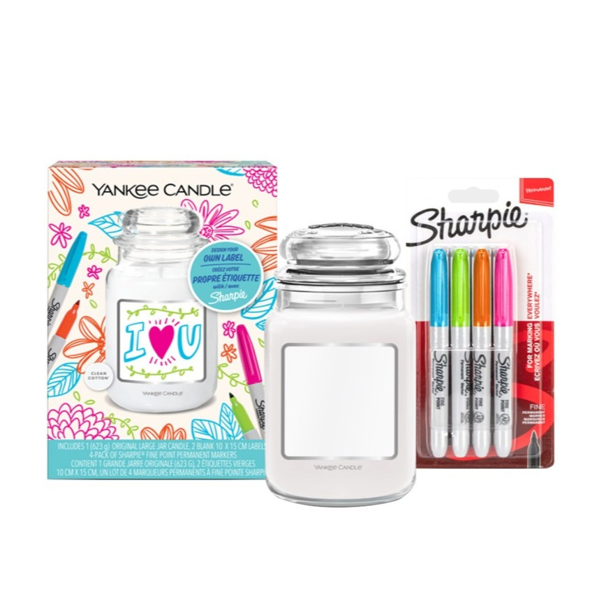 Bestelle dieses tolle Sharpie Geschenkset von Yankee Candle für Deine Liebsten. Das DIY Set enthält eine Duftkerze im Glas, welche aus erlesenen Zutaten bestehen, darunter reine Naturextrakte, zudem zwei leere Etiketten und 4 bunte permanent Marker. So kannst Du Deine eigene Kerze gestalten und Deiner Kreativität freien Lauf lassen. Die fertig gestaltet Kerze oder auch gleich das komplette Sharpie Set eignet sich besonders gut als Geschenkidee für Weihnachten, Geburtstage oder auch Muttertag.