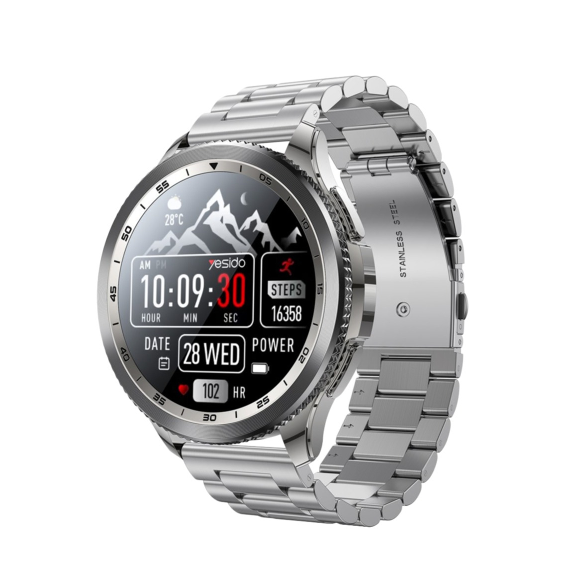 Die YESIDO IO 34 Smart Watch überzeugt mit einem stilvollen Design und moderner Technik. Das hochwertige Gehäuse aus Zinklegierung sorgt für einen eleganten Look, der sowohl im Business Alltag als auch in der Freizeit passt.