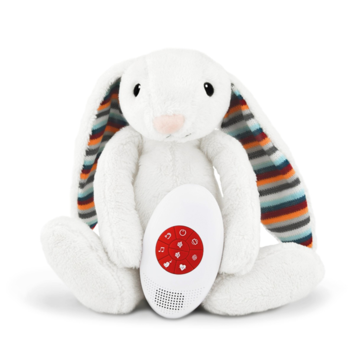 Bibi Musikbox Plüschtier Einschlafhilfe Kuscheltier Baby Schlafhilfe mit Geräuschsensor Batteriebetrieben (ZA-BIBI-01) - Weiss / Bunt